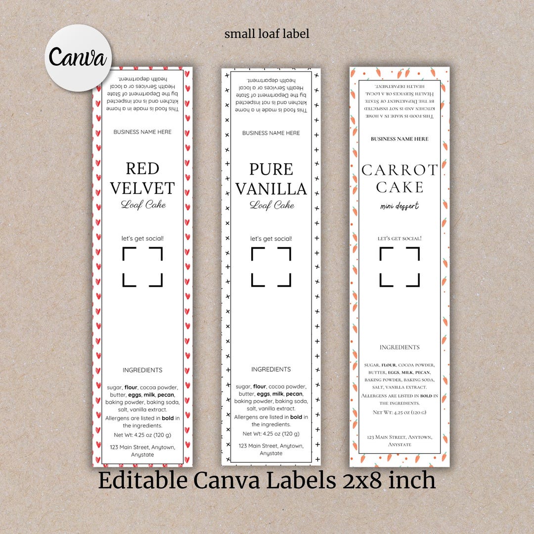 Printable Minimalist Label Template 2x8 Mini Loaf Dessert Korean Style