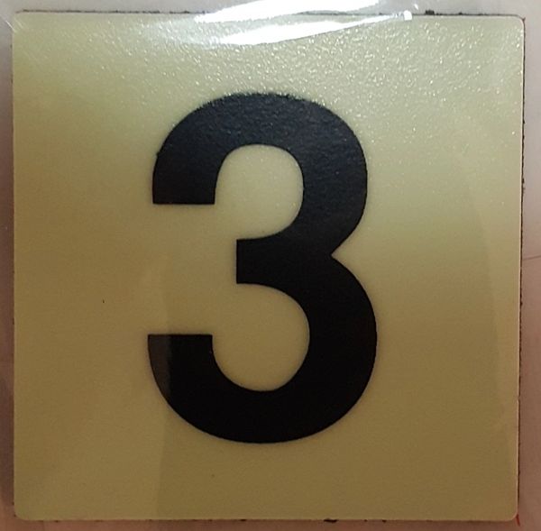 PHOTOLUMINESCENT DOOR NUMBER 3 SIGN (GLOW IN DARK ALUMINUM SIGN) HPD