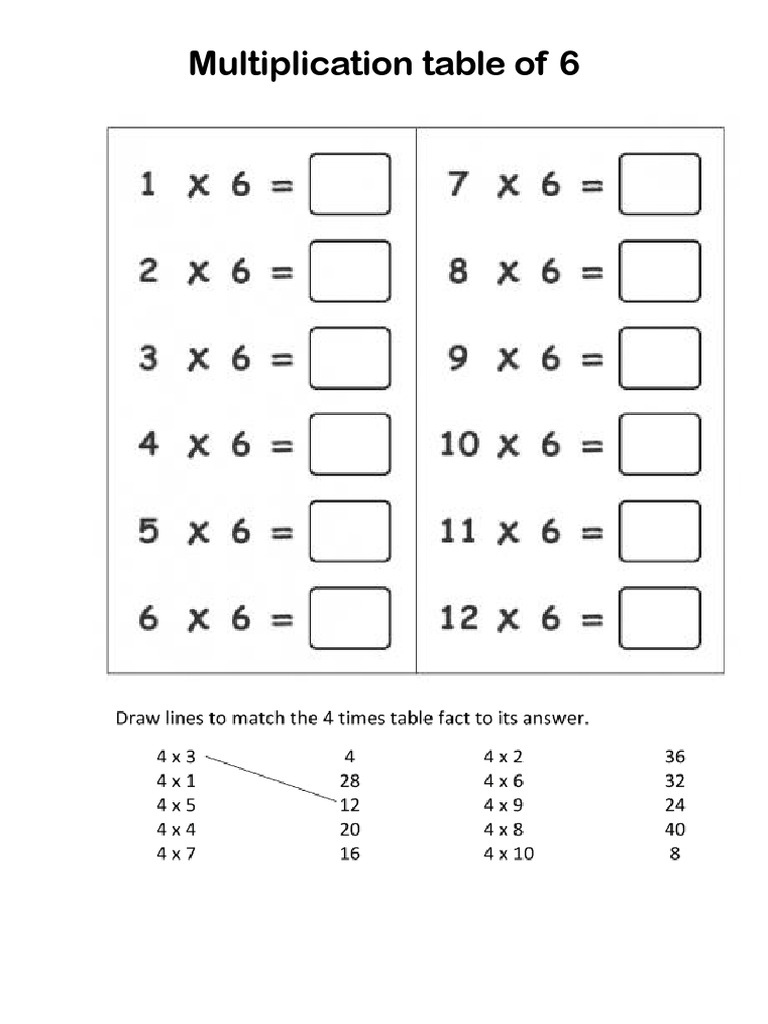 Practice Multiplication Table of 6 PDF Cooking Food Wine