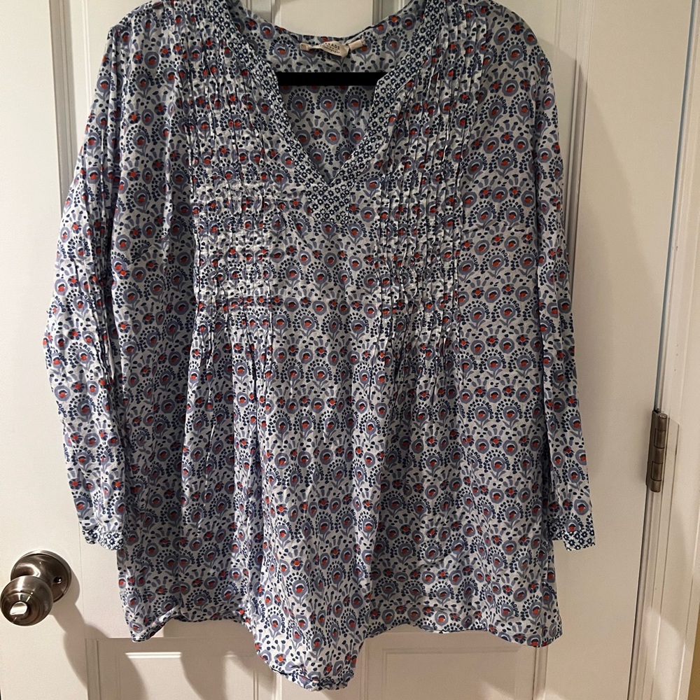Rock Paper Scissors Blue Floral Pintuck Tunic Size Me Gem