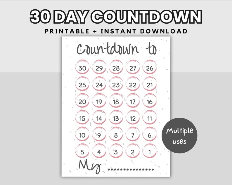 30 Day Countdown Printable A4 Instant Download Daily Countdown to
