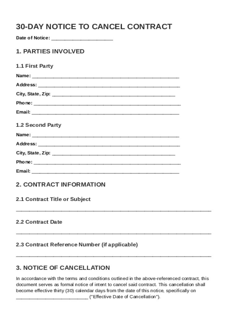 30 Day Notice To Cancel Contract Template: Fill out sign online DocHub
