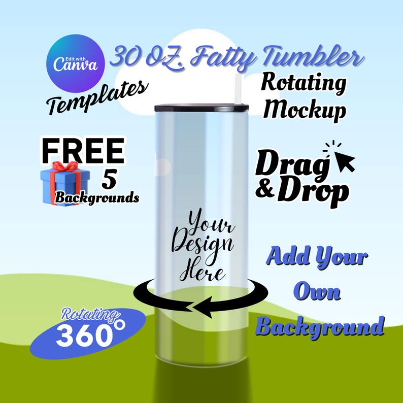 30 OZ Fatty Tumbler Rotating Mockup Spinning Tumbler Canva Template