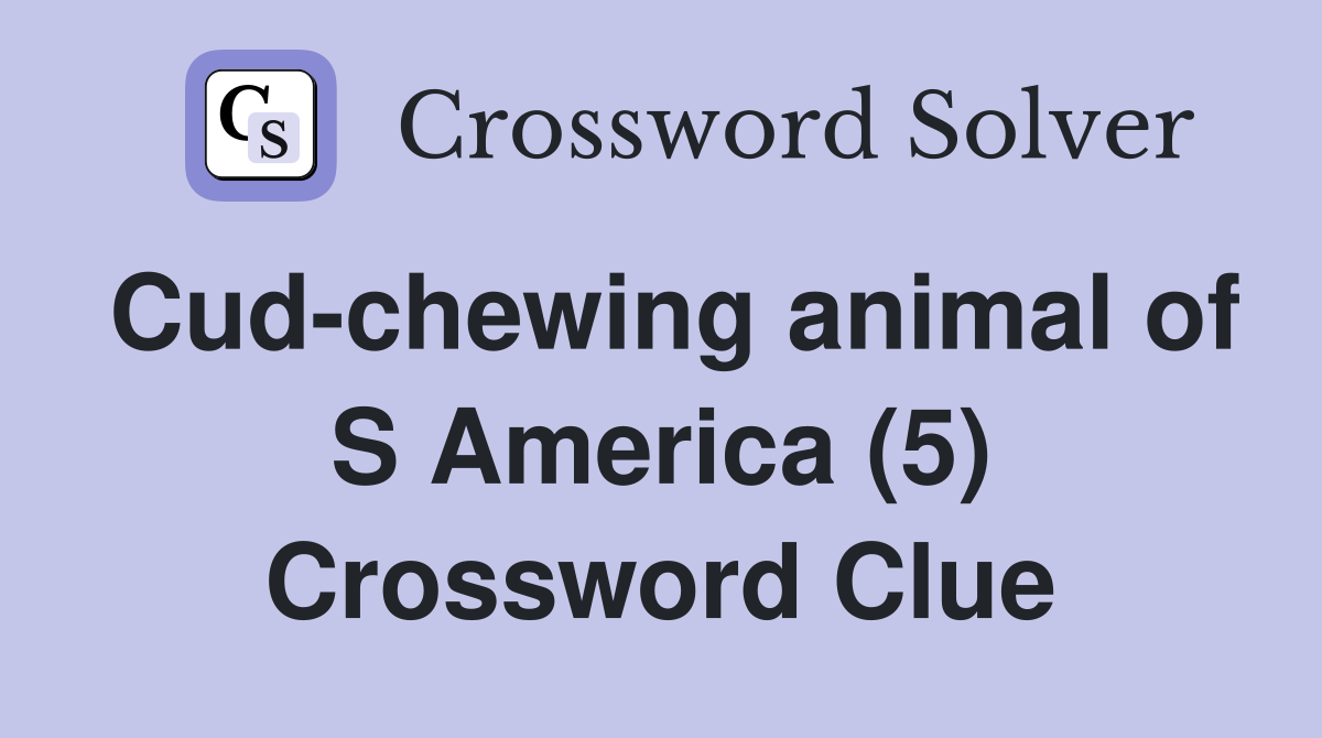 Cud chewing animal of S America (5) Crossword Clue Answers