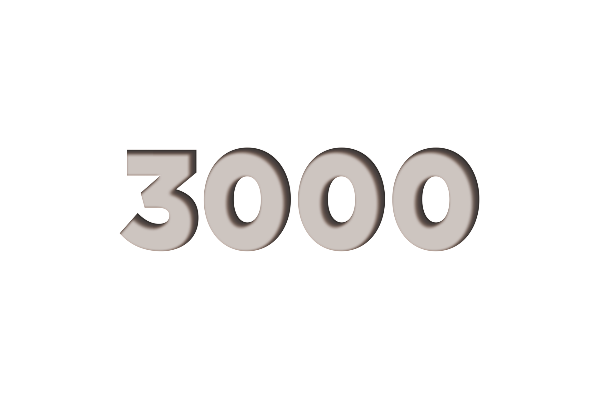 3000 subscribers celebration greeting Number with steel design 23972532 PNG