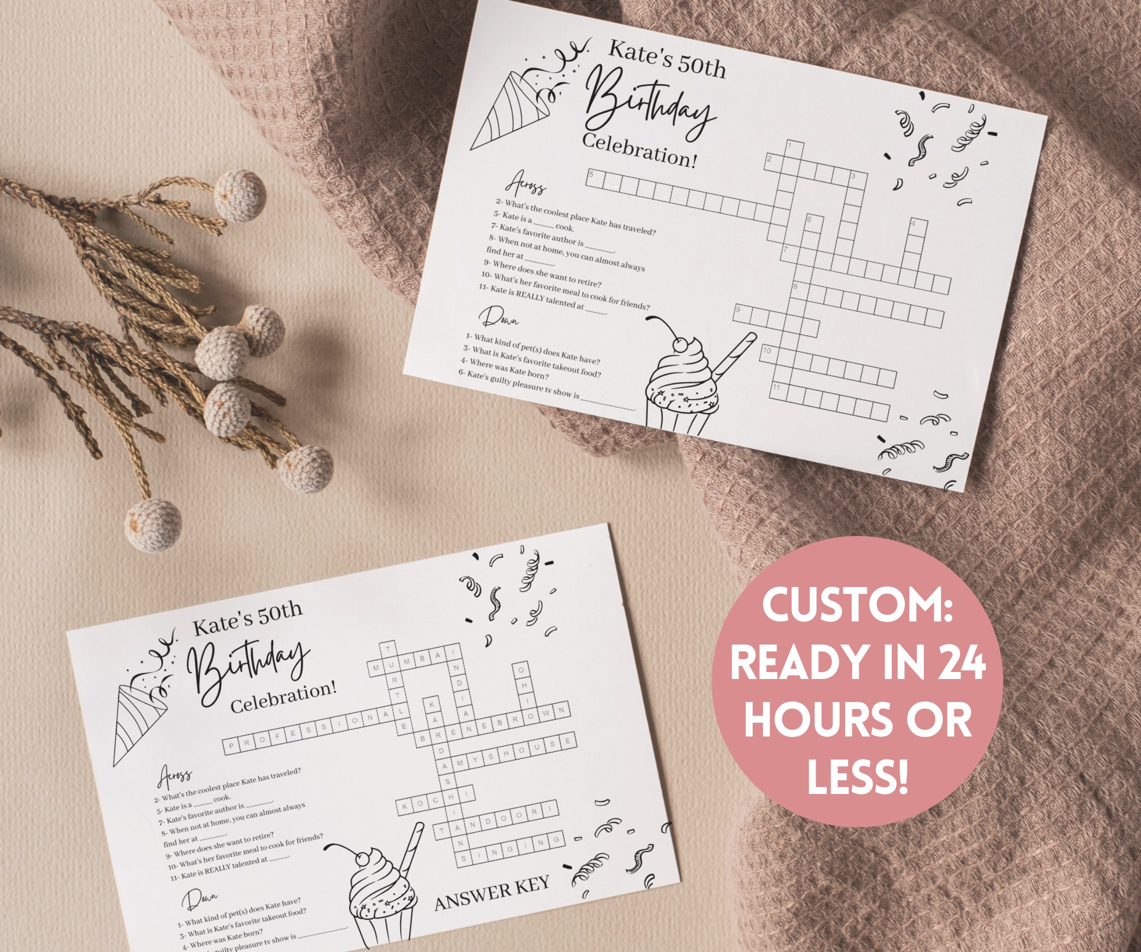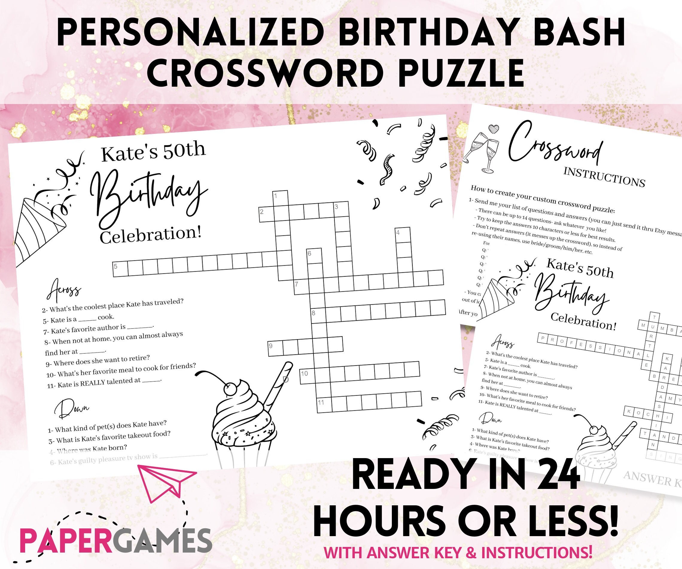 Birthday Crossword Puzzle Custom Personalized Birthday Party Game 25th
