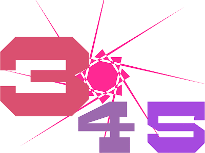 3D 345 number font alphabet White 3D Number 345 with yellow background