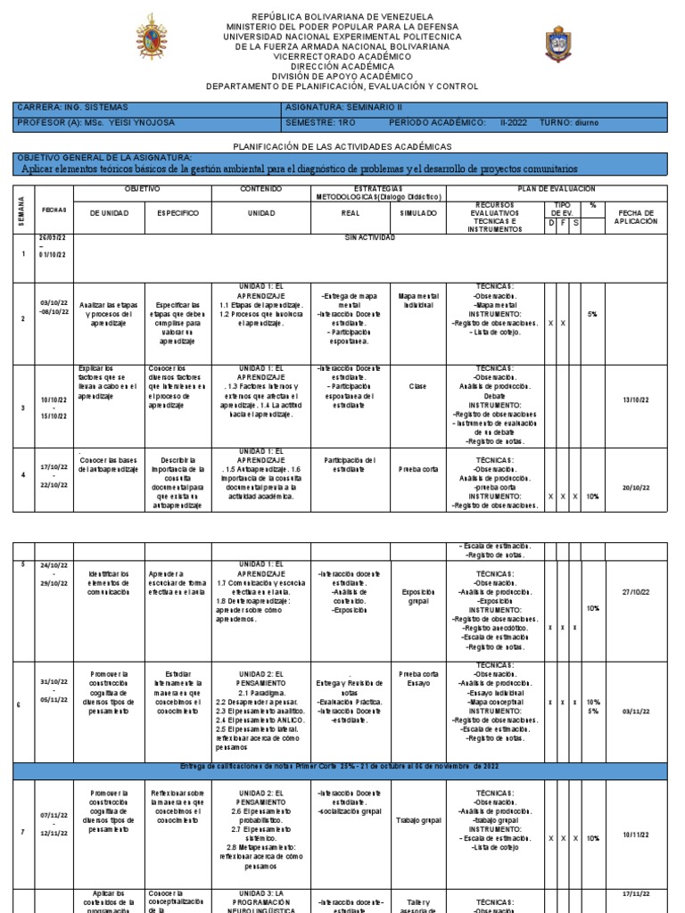 Planificación General SEMINARIO II PDF Aprendizaje Evaluación