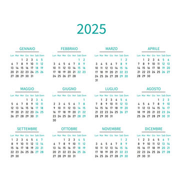 2025 year Italian calendar Vector illustration for Italy Calendario