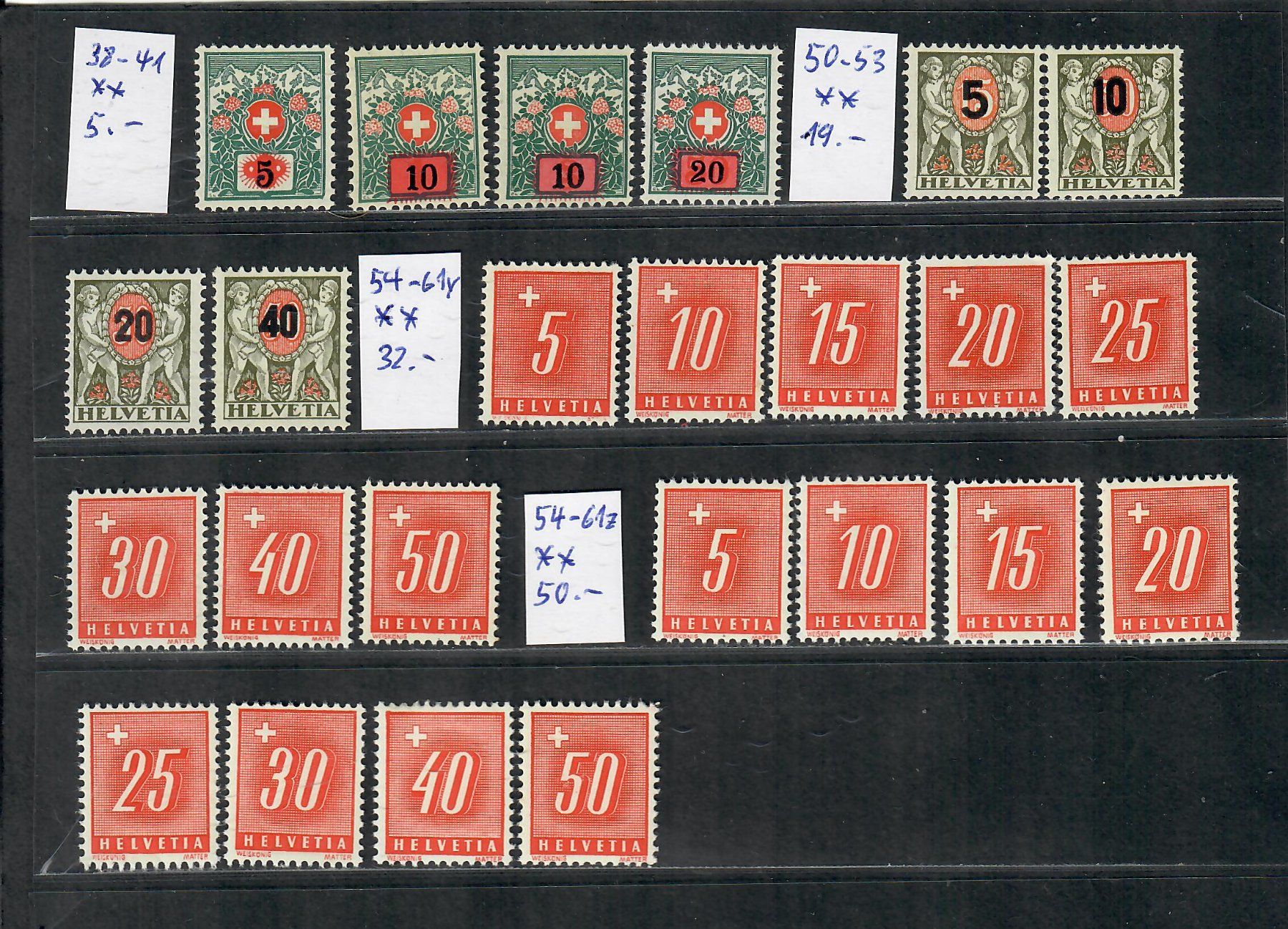 1910: 4Sätze Nr 38 41 50 53 54 61y z Portomarken ** (Neu und