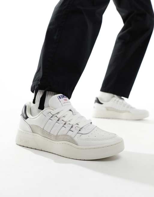 Mens White Black K SWISS Cannon Court Cl Trainers schuh