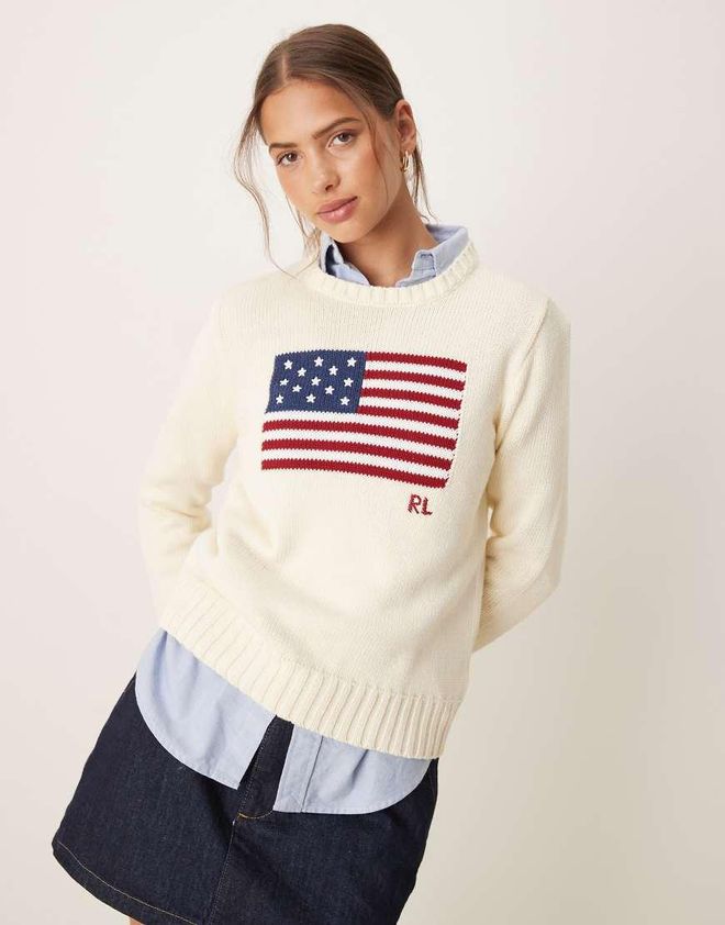 Polo Ralph Lauren Strickpullover in Creme mit Flaggen Logo Weiß ab 395