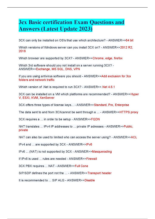 3cx Basic Certification Exam Questions And Answers / Verified 3cx