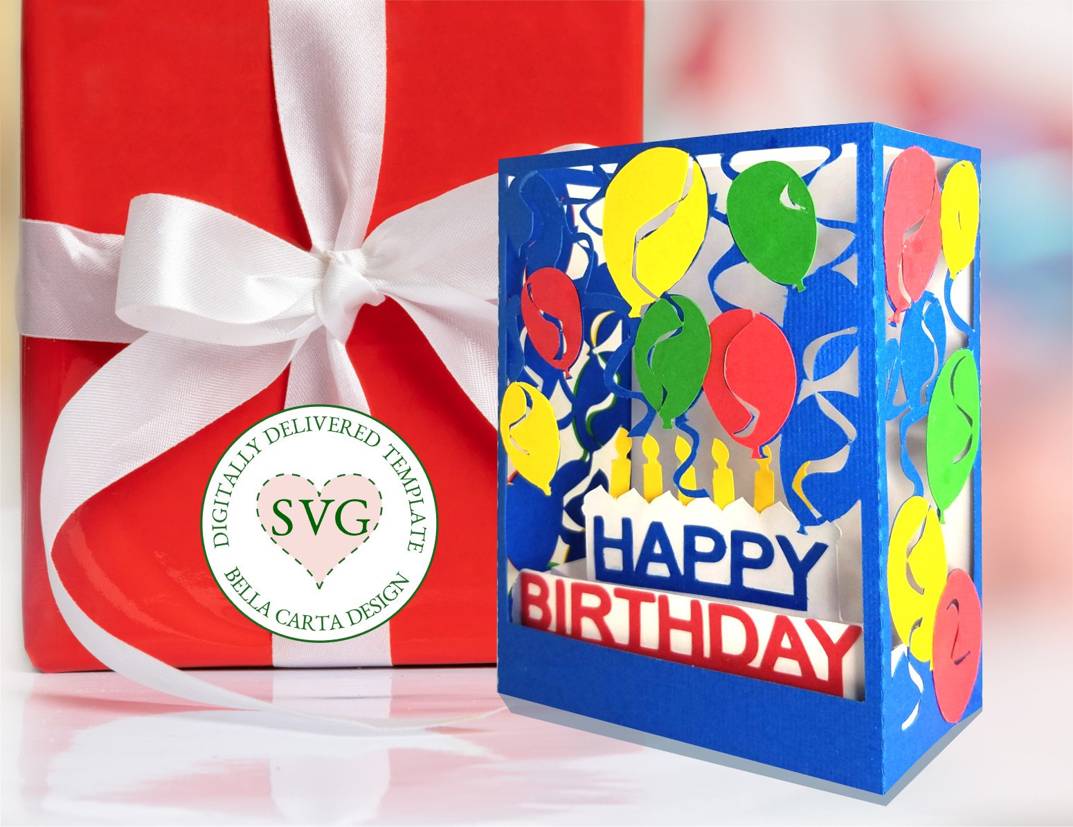 Birthday Balloons Shadowbox 3D Card Template SVG Digital File Cricut Etsy