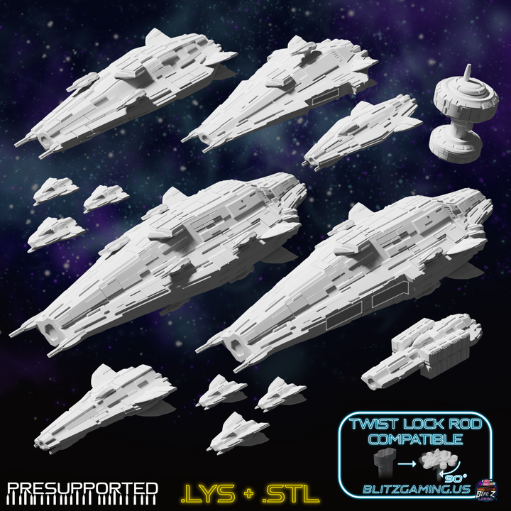 3D Printable Zephyrian Fleet 12 Starships for Brave Sun and other