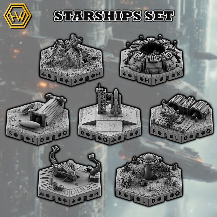 3D Printable 9 Starships Terrain Bundle Brave Sun Starship