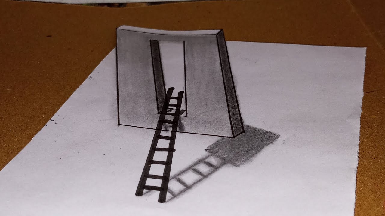 simple 3d optical illusion tutorial ladder drawing on the paper YouTube