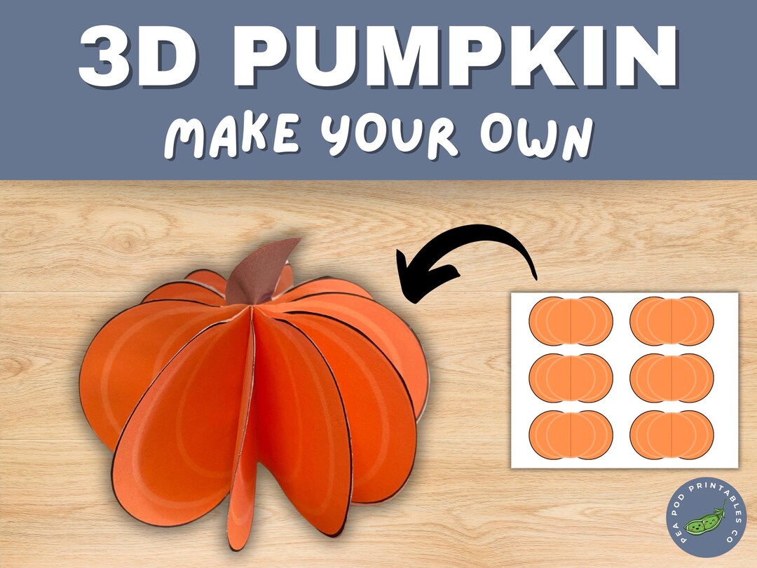 Printable 3D Pumpkin Template DIY Halloween Craft for Kids Adults