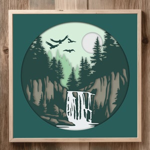 3D Layered Templates Svg 3D Waterfall Shadow Box Paper 3D Art Nature