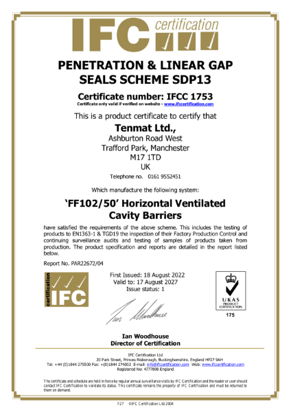 FF102/50 Ventilated Cavity Fire Barrier 3rd Party Certification