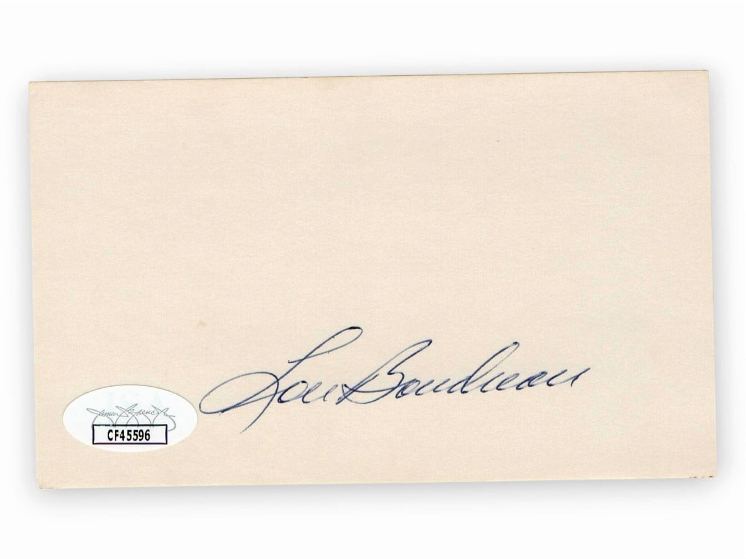 Lou Boudreau Signed Autographed 3X5 Index Card Indians Hall of Famer
