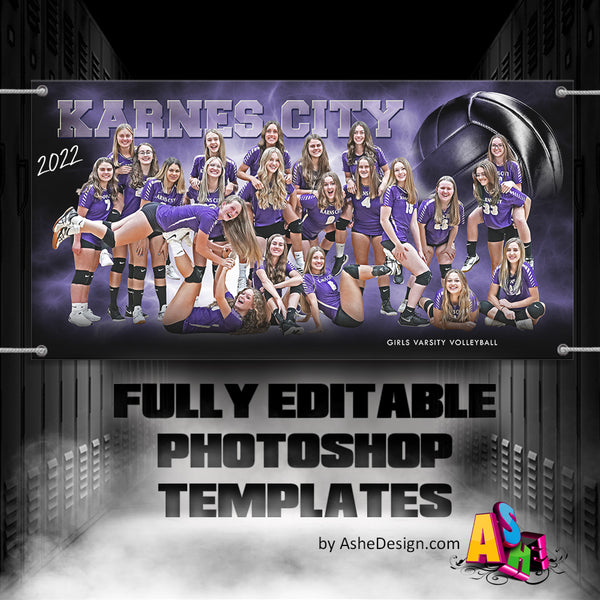 3x6 Amped Sports Banner Photoshop Template Stormy Lights Volleyball