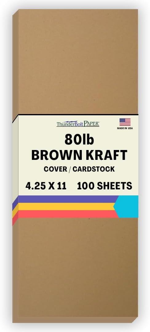 100 Brown Kraft Fiber 80# Cover Paper Paper Sheets 4 25 X 11 Inches