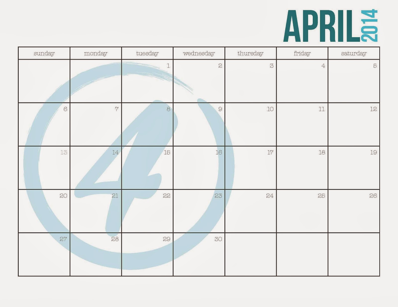 April 2014 Printable Calendar