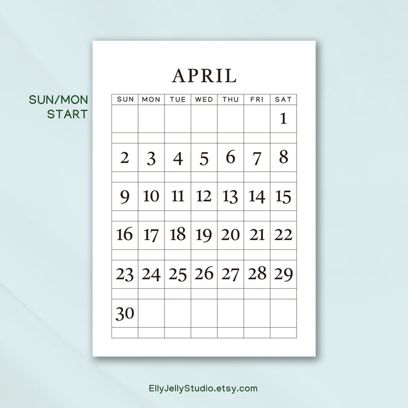 April 2024 Blank Calendar Horizontal Printable Calendar Instant