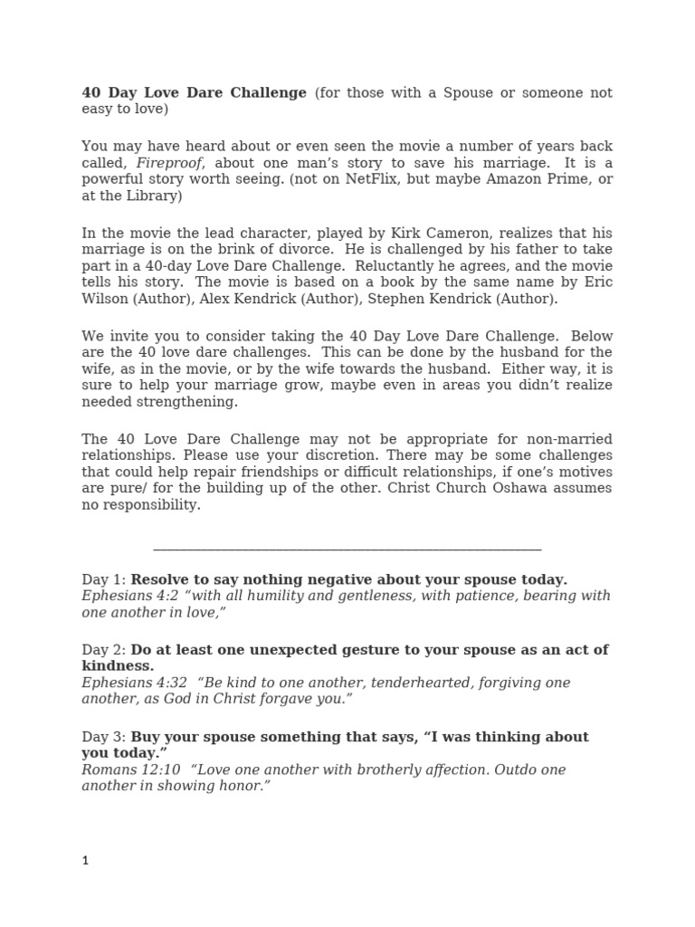 Here are some of the images for 40 Day Love Dare Printable that we found in our website database.