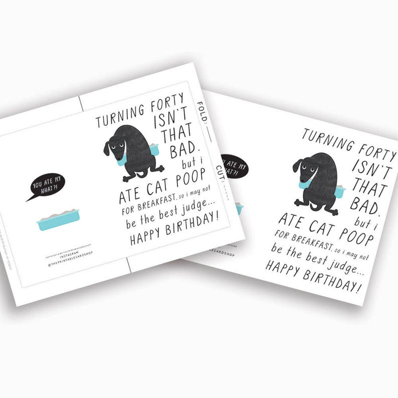 Pet Dad 40th Birthday Printable Cards Instant Download 40 Etsy
