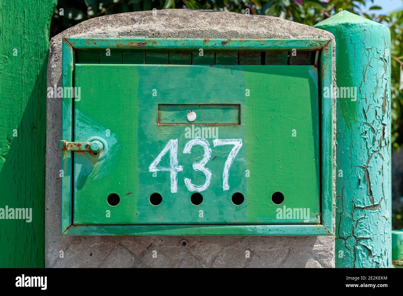 Number 437 Symbol or Logo with Round Frame in Blue Gradient Color Stock