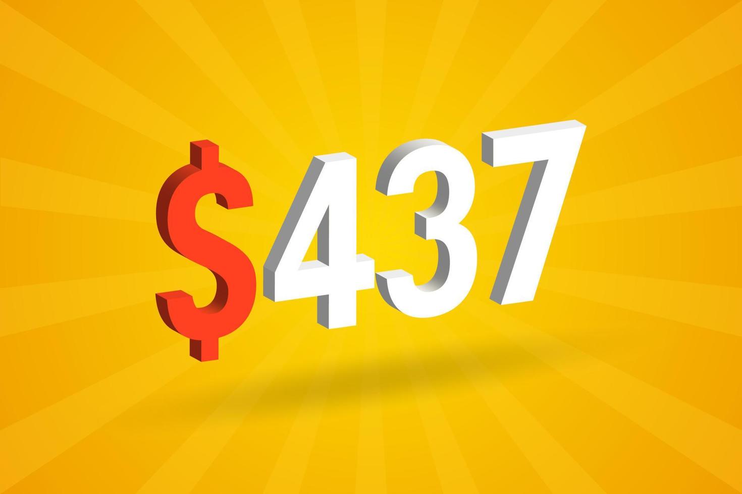 437 USD 3D text symbol 437 United State Dollar 3D with yellow