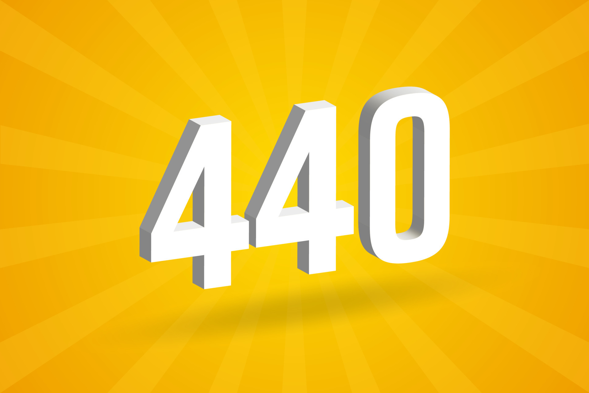 3D 440 number font alphabet White 3D Number 440 with yellow background