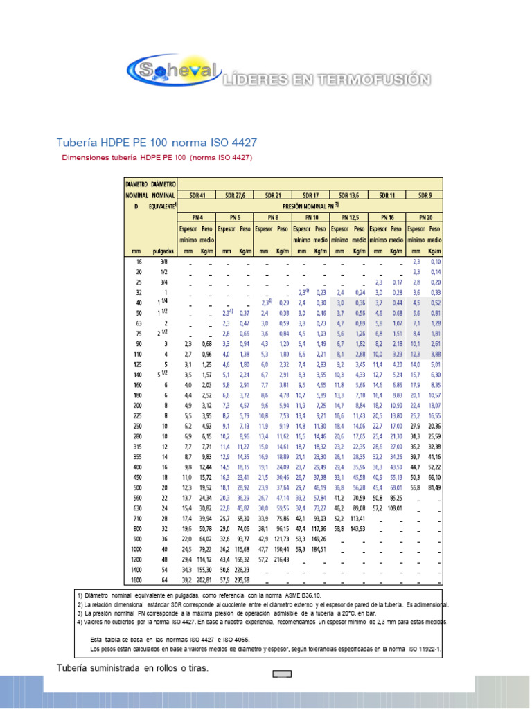 Tubería HDPE PE 100 norma ISO 4427 Soheval PDF Tecnologías de gas