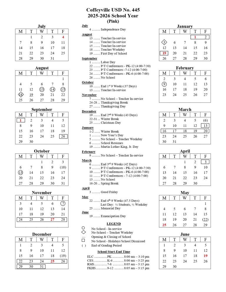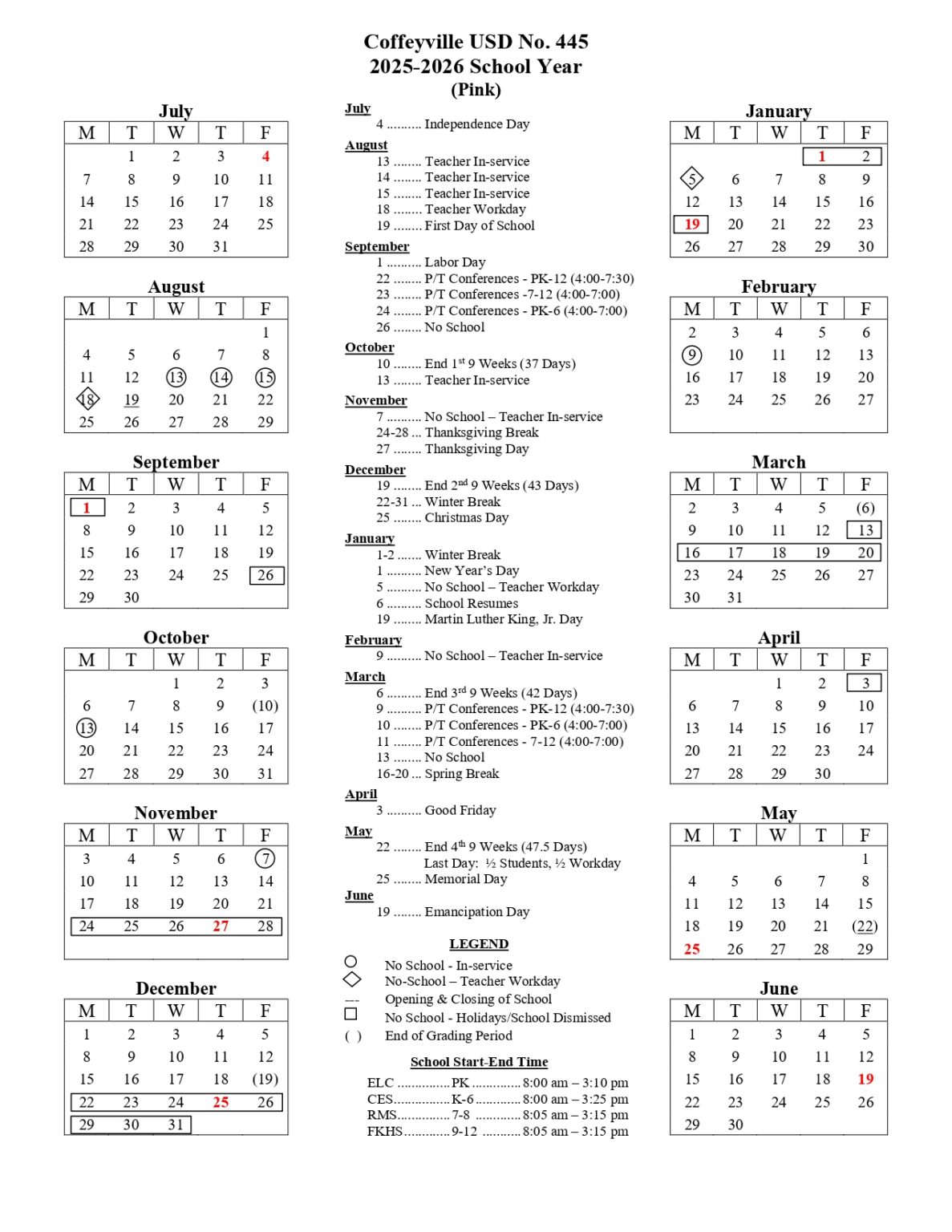 Coffeyville Unified School District 445 Calendar 25 26 Revised pdf