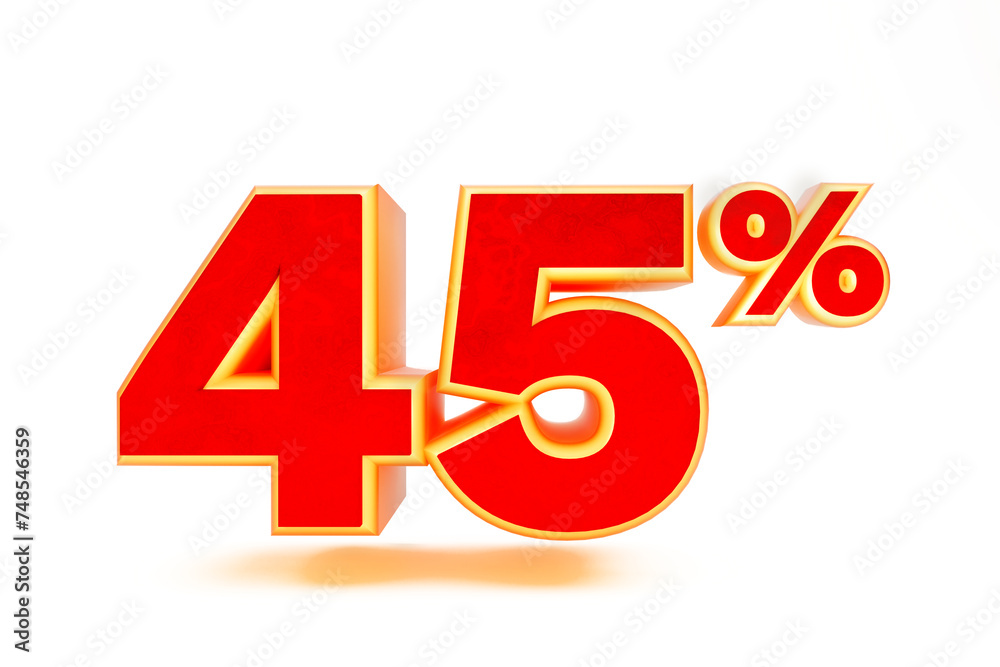 내부 그림자 3d 그림이 있는 빨간색 광고 숫자 45 또는 45 프리미엄 사진