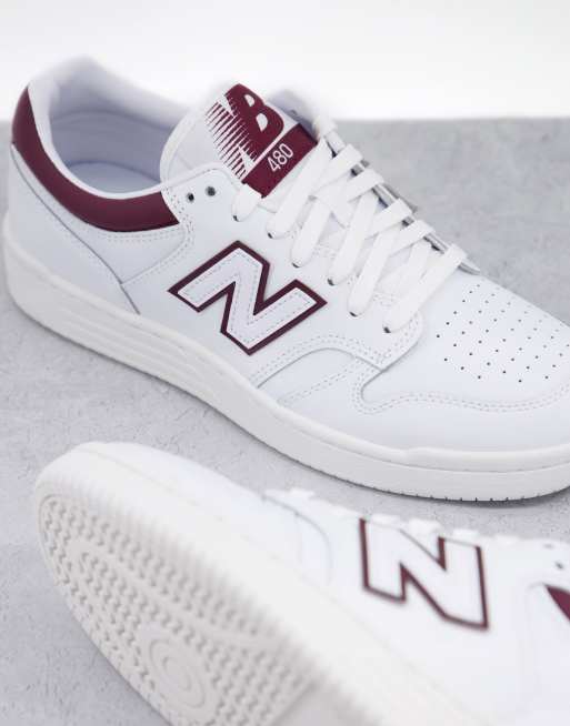 New Balance 480 court sneakers in white and burgundy ASOS