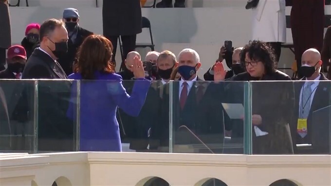 US Vice President elect Kamala Harris is sworn in as the 49th US Vice