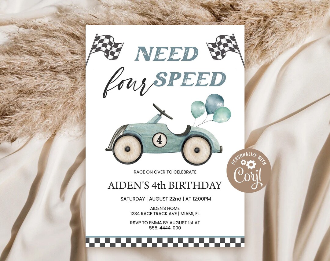 Boys Need 4 Speed 4th Birthday Invite With Picture Etsy
