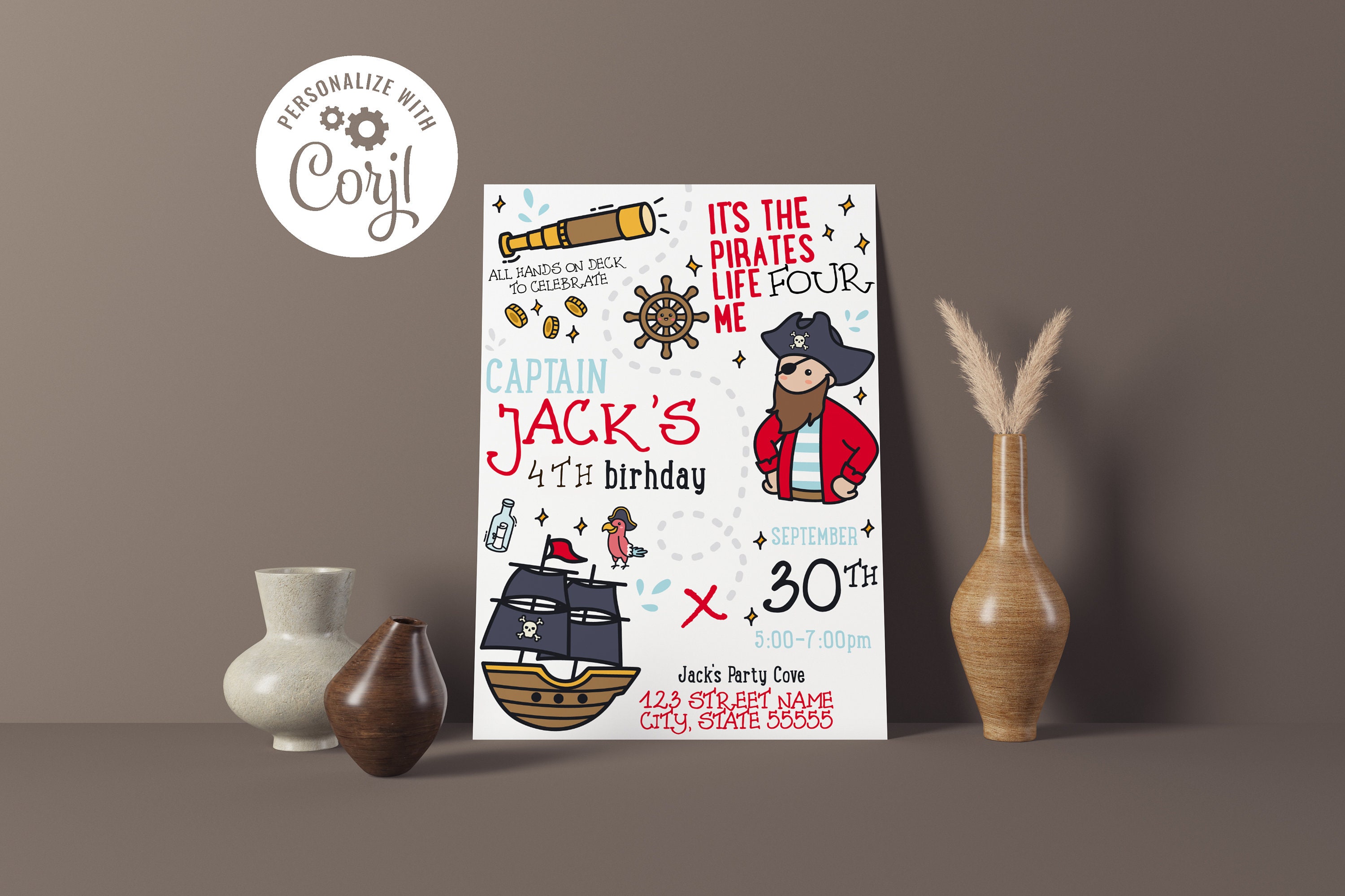 Editable Pirates Life Four Me Birthday Invitation Digital Template