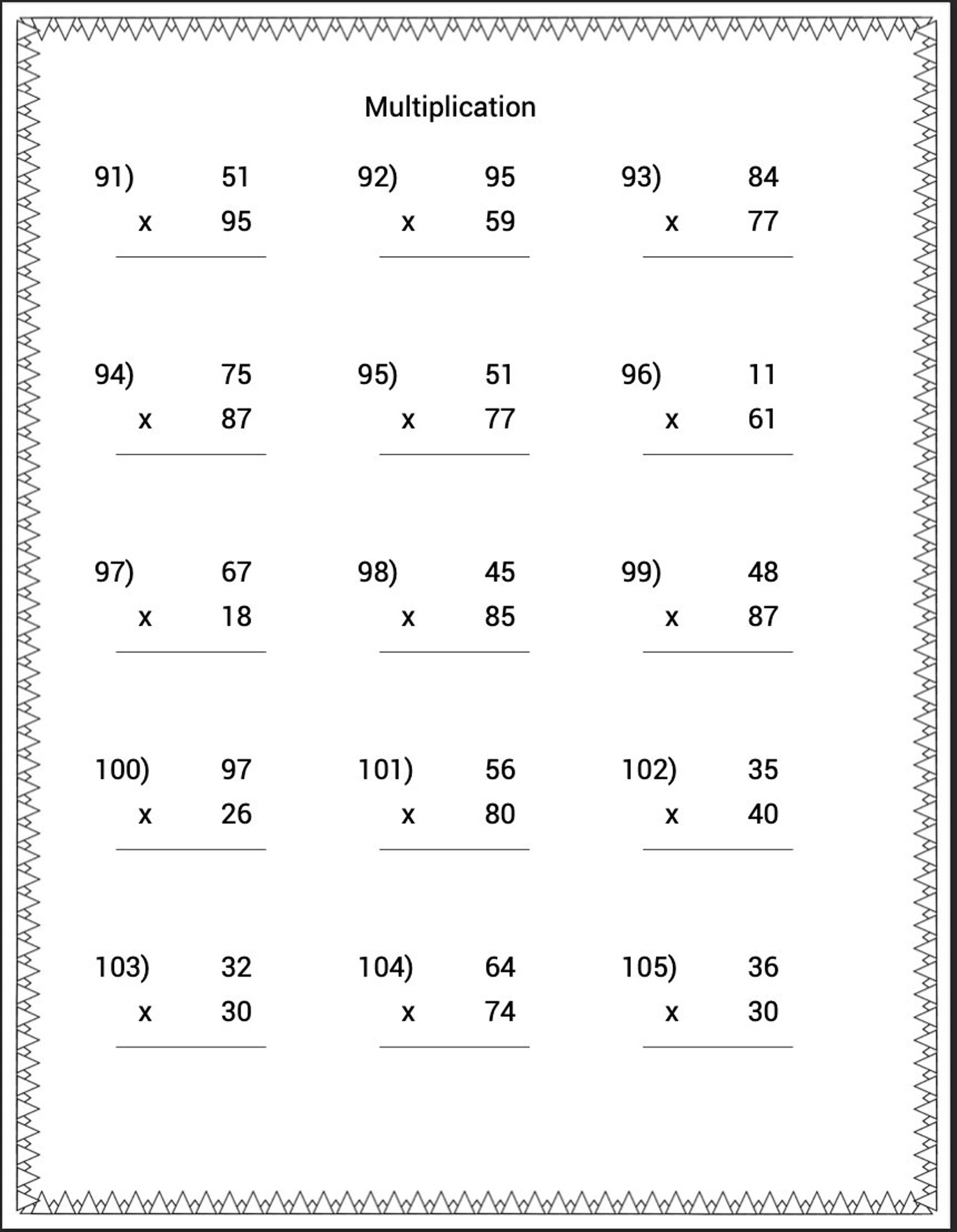 Free Printable Multiplication Worksheets (for Grade 3 to 5)