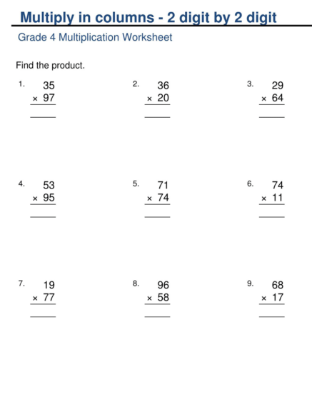 4th Grade Multiplication Worksheets