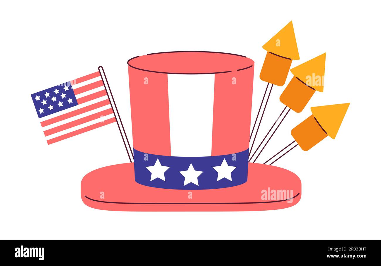 4th of july hat monochrome flat vector object Stock Vector Image Art