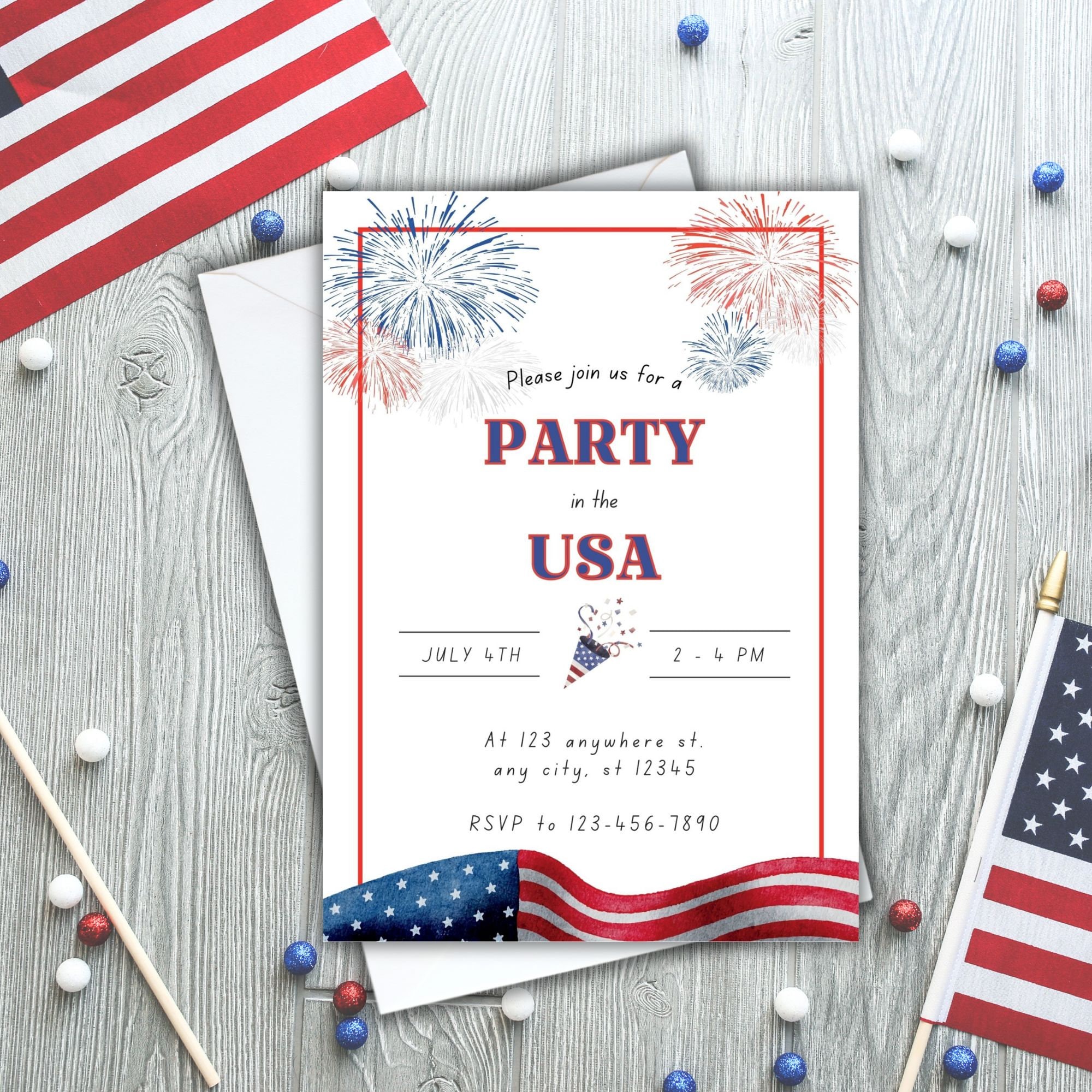 Printable 4th of July Invitation Instant Download Editable Printable