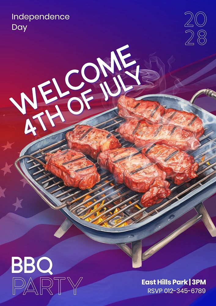 BBQ 4th July poster template Free Photo rawpixel