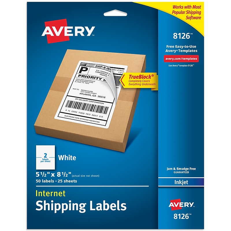 Avery TrueBlock Inkjet Shipping Labels 5 5 quot x 8 5 quot Matte White 50