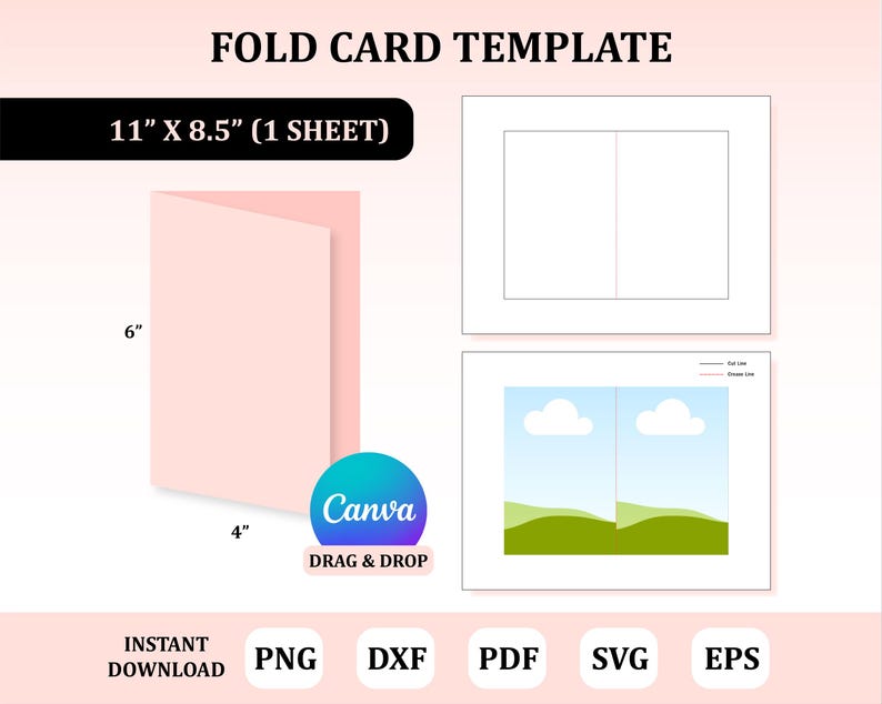 Folded Card Template / 4x6 5x7 / PSD PNG TIFF Etsy Canada