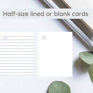 Half Size Index Cards Blank and Lined Refills Punched Holes for