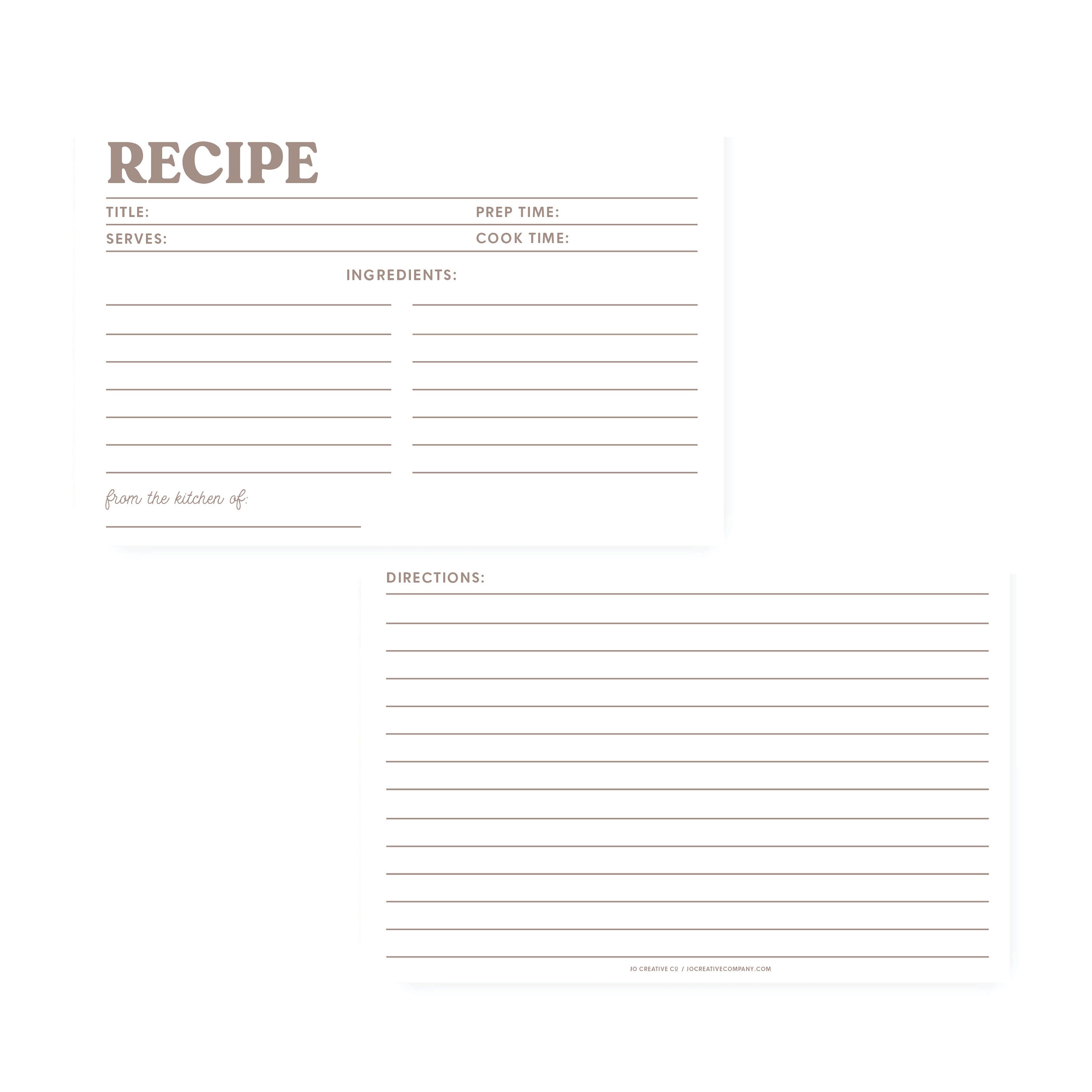 Recipe Card Template 4x6 Printable Design PDF Digital Download